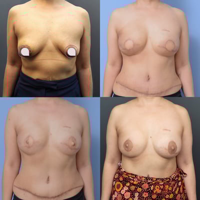 In patients who have a smaller chest frame and limited tissue availability from their abdomen, an implant reconstruction can provide excellent results especially in patients who desire a slight upsizing to their previous breast volume.