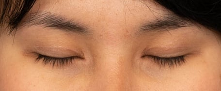 This patient in her 20s had no double eyelid fold and wanted creation of her folds as an infold. Due to overlying skin excess, the simulated fold was unable to be created from the inner corner of her eye and she therefore required a medial epicanthoplasty procedure to decrease the heaviness of skin and muscle in her inner eyelid corner which was dragging her eyelid tissues down.