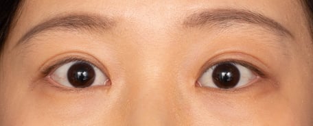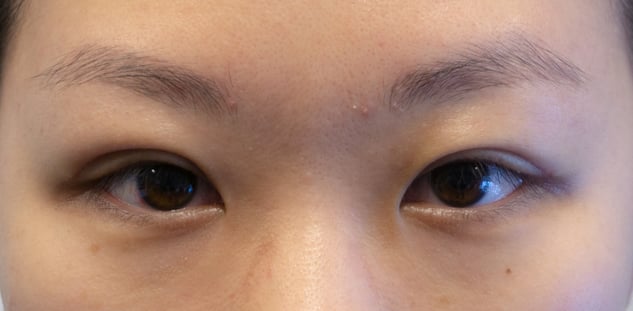 This patient in her 20s had a subtle natural double eyelid crease in her left eyelid, however not fully formed and no crease in her right eyelid and sought help with correction of her asymmetry.