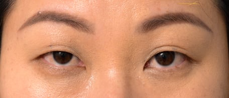 An incisional double eyelid procedure was recommended for excision of the excess skin and creation of a higher, more distinct eyelid crease and to improve the heaviness of her eyelid appearance.
