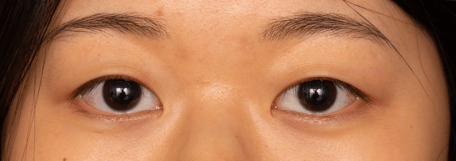 This patient in her 20s had a low but naturally occurring fold and some heaviness in opening her left eye. A non incisional double eyelid operation was performed after consultation to allow for minor adjustment of the shape of her eyelid crease and to strengthen her eyelid fold.